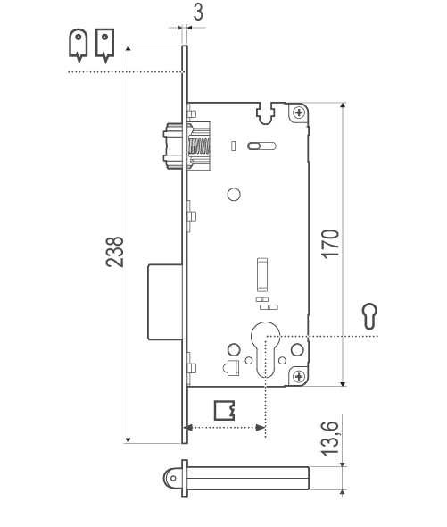 Cerradura con contrafrontal incluido